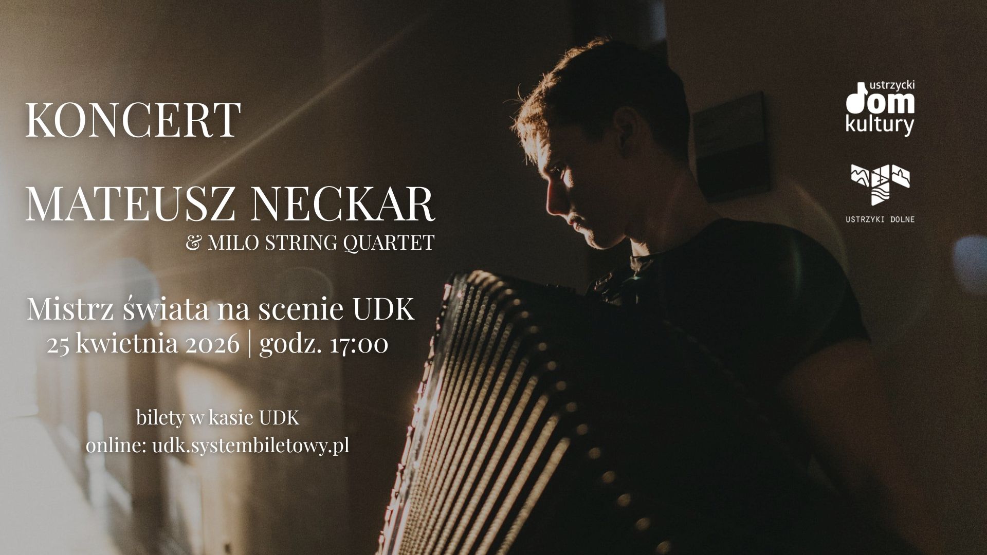 Tym razem na scenie Ustrzyckiego Domu Kultury wystąpi wraz z MILO String Quartet – zespołem młodych kameralistek związanych z Akademią Muzyczną im. Krzysztofa Pendereckiego w Krakowie, docenianym na konkursach i festiwalach w całej Polsce.